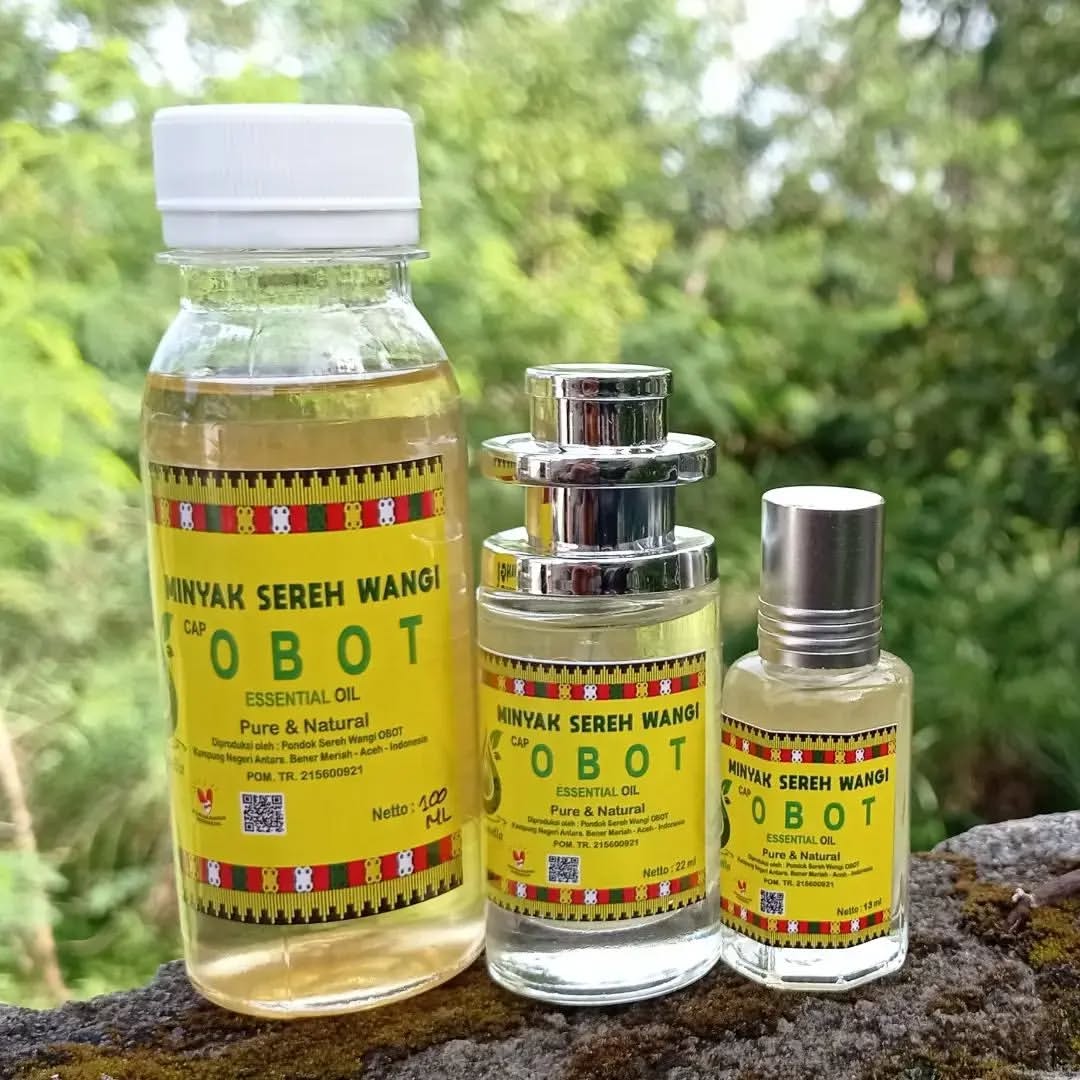 Minyak Sereh Wangi Cap OBOT 100% Murni disuling dari Perkebunan Pondok Sereh Wangi OBOT Kampung Negeri Antara, Kec. pintu Rime Gayo Kab. Bener Meriah – Aceh